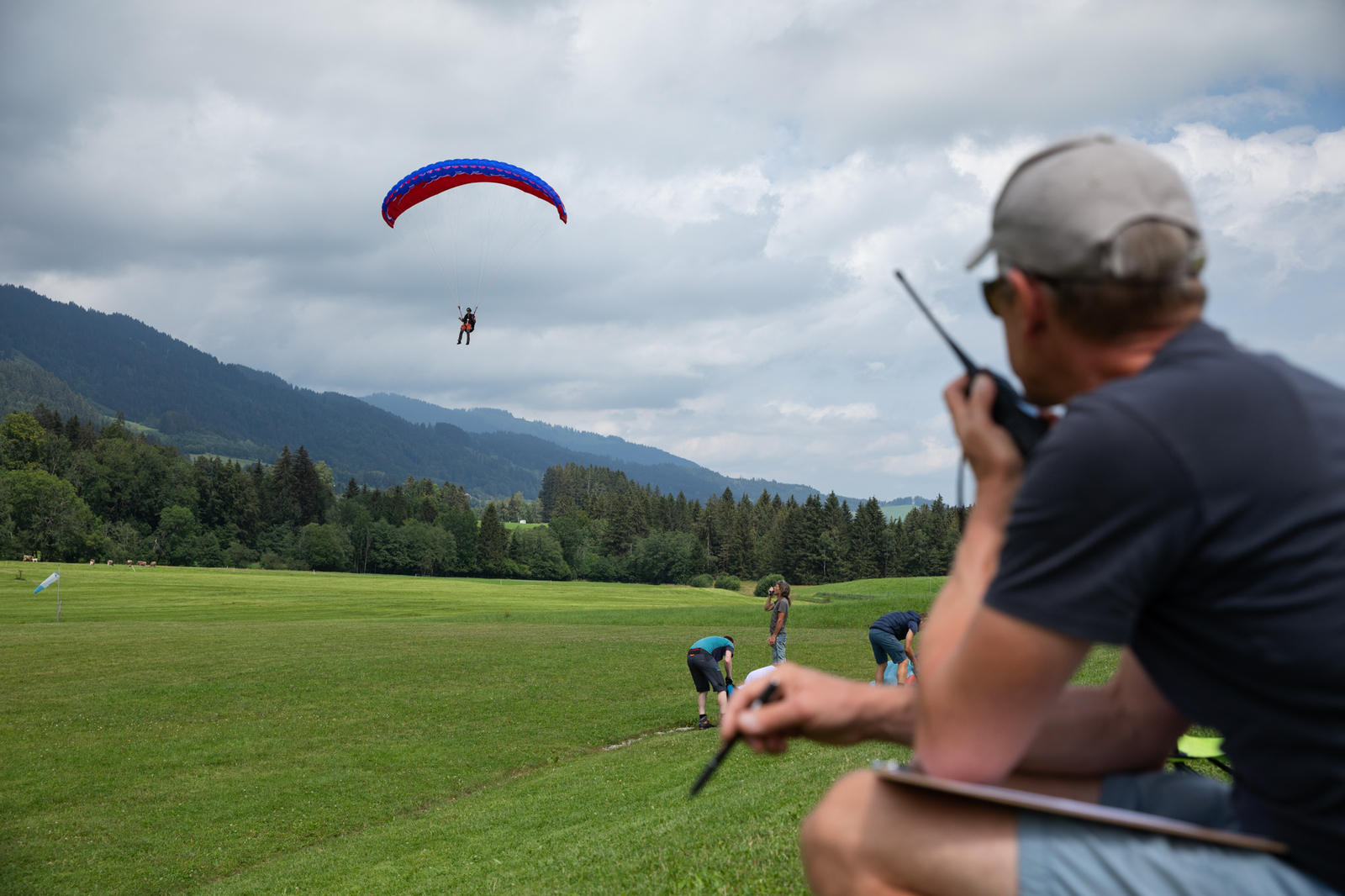 Wir treffen uns am Landeplatz oder direkt an unserer Flugschule und fahren gemeinsam mit der Gondel zum Startplatz. Dabei lernst du deinen Piloten schon kennen und kannst offene Fragen stellen.