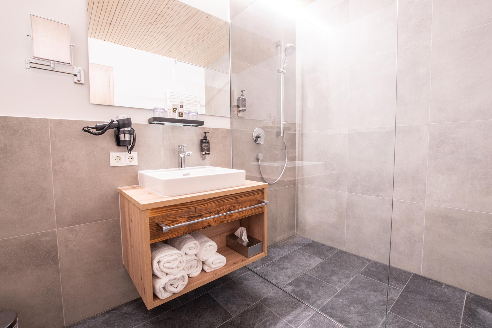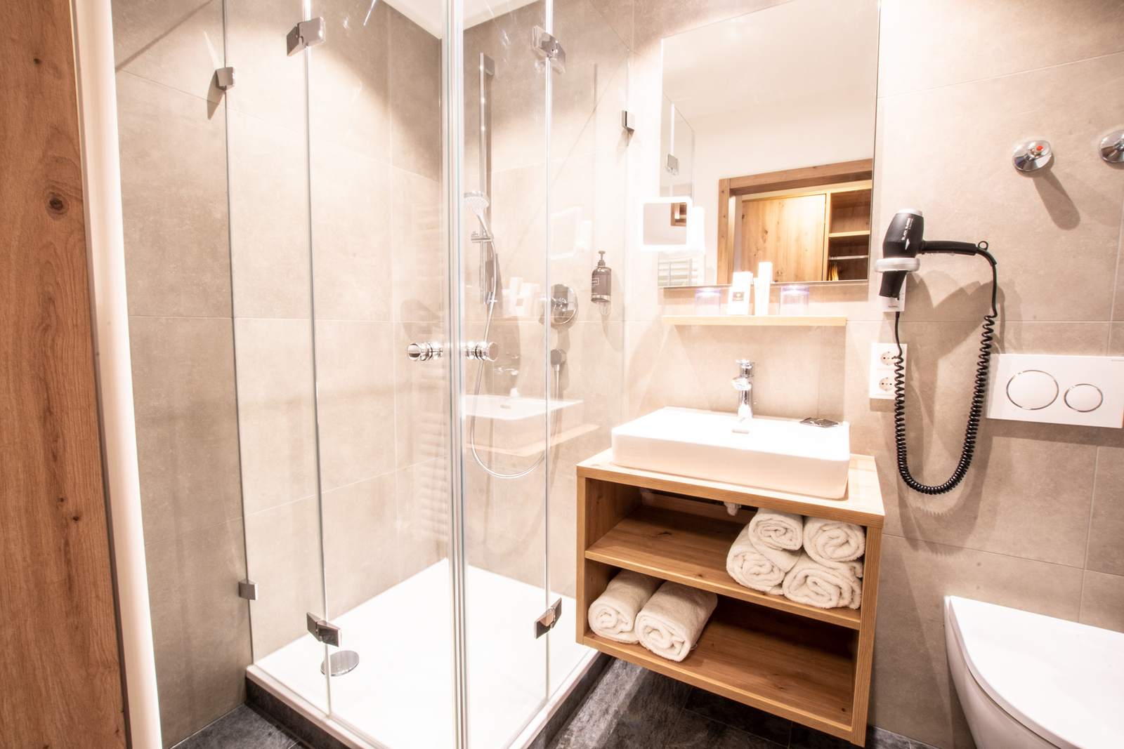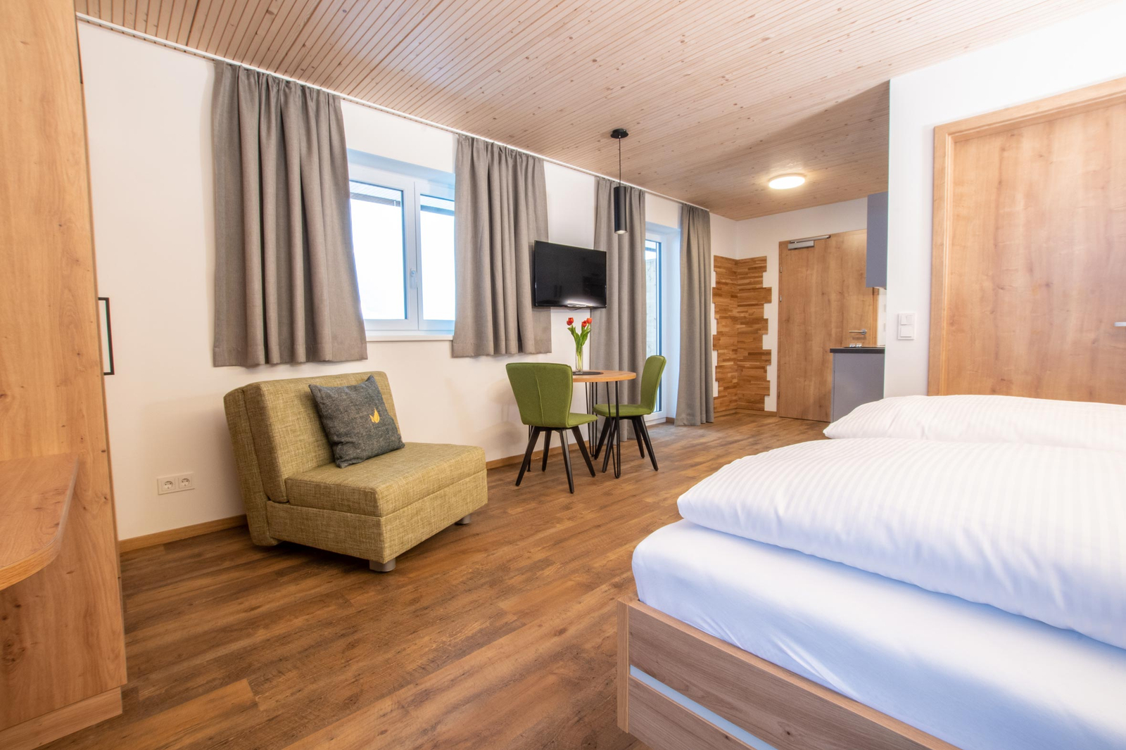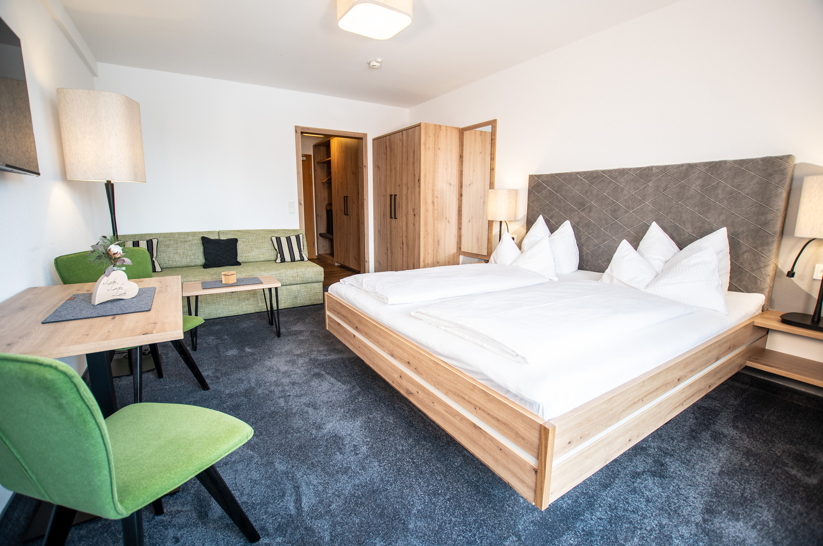 Die neuen Chalets und Zimmer verbinden alpine Gemütlichkeit mit modernem Komfort. Warme Hölzer, natürliche Farben und der Blick in die Berge schaffen eine Atmosphäre zum Ankommen und Wohlfühlen. Ob klassisch im Landhausstil oder modern in Eiche – hier findest Du den Raum für Deine ganz persönliche Auszeit.