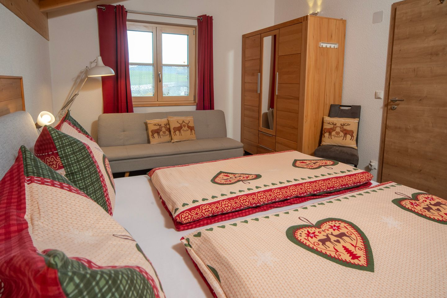 Die Ferienwohnung Alpenliebe in Bolsterlang vereint Ruhe, Komfort und alpinen Charme. Liebevoll im Alpin-Stil mit Zirbenholzelementen eingerichtet, bietet sie drei große Balkone mit traumhaftem Blick auf den Alpenhauptkamm.