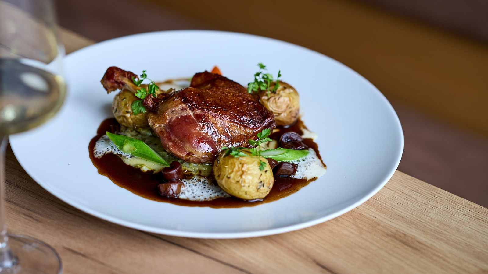 Im La Vallée erwartet dich ehrliche, handwerkliche Küche mit Charakter. Auf der Karte findest du Bistro-Klassiker mit alpinem Touch – vom Tatar mit Pommes über geschmorte Entenkeule bis hin zu feinen Pastagerichten. Dazu ein Glas Riesling oder ein Espresso zum Abschluss – und der Genussmoment ist perfekt.