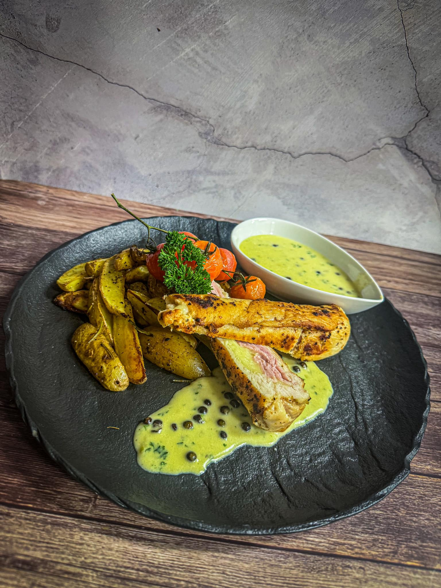 Wer es deftiger mag, probiert die Hauptspeisen wie Piccata Milanese vom Huhn, gefüllte Hähnchenbrust im Pfeffermantel oder das saftige Rumpsteak Madagascar.